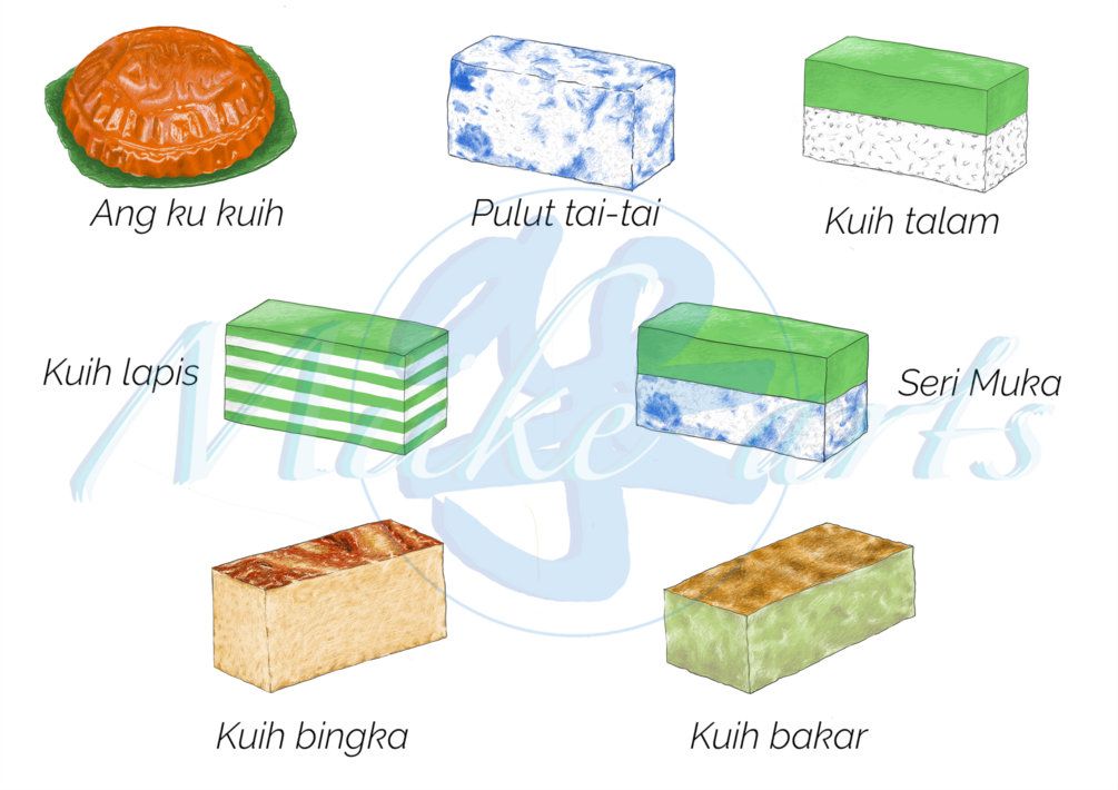 Selection of hand drawn digital Malaysian Kuih cliparts